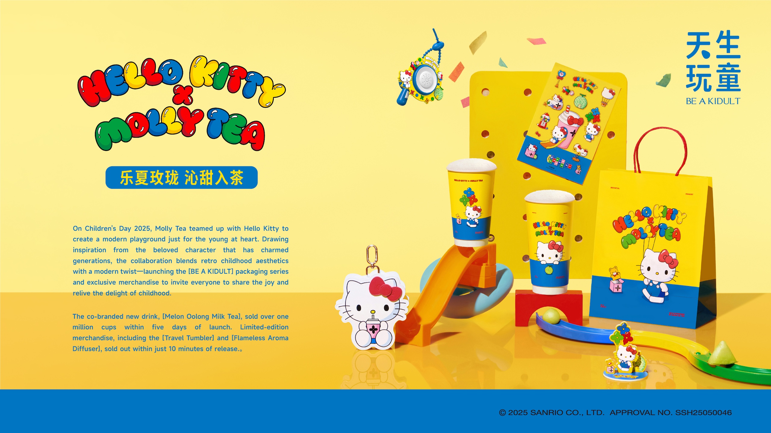 2025年六一儿童节,茉莉奶白携手Hello Kitty,打造玩童专属摩登乐园。以跨越半世纪的萌趣经典形象为灵感, 用复古童趣美学碰撞摩登之意,延展[天生玩童]系列包材和周边,邀请大家一起瓜分快乐,重拾童年欢喜记忆。